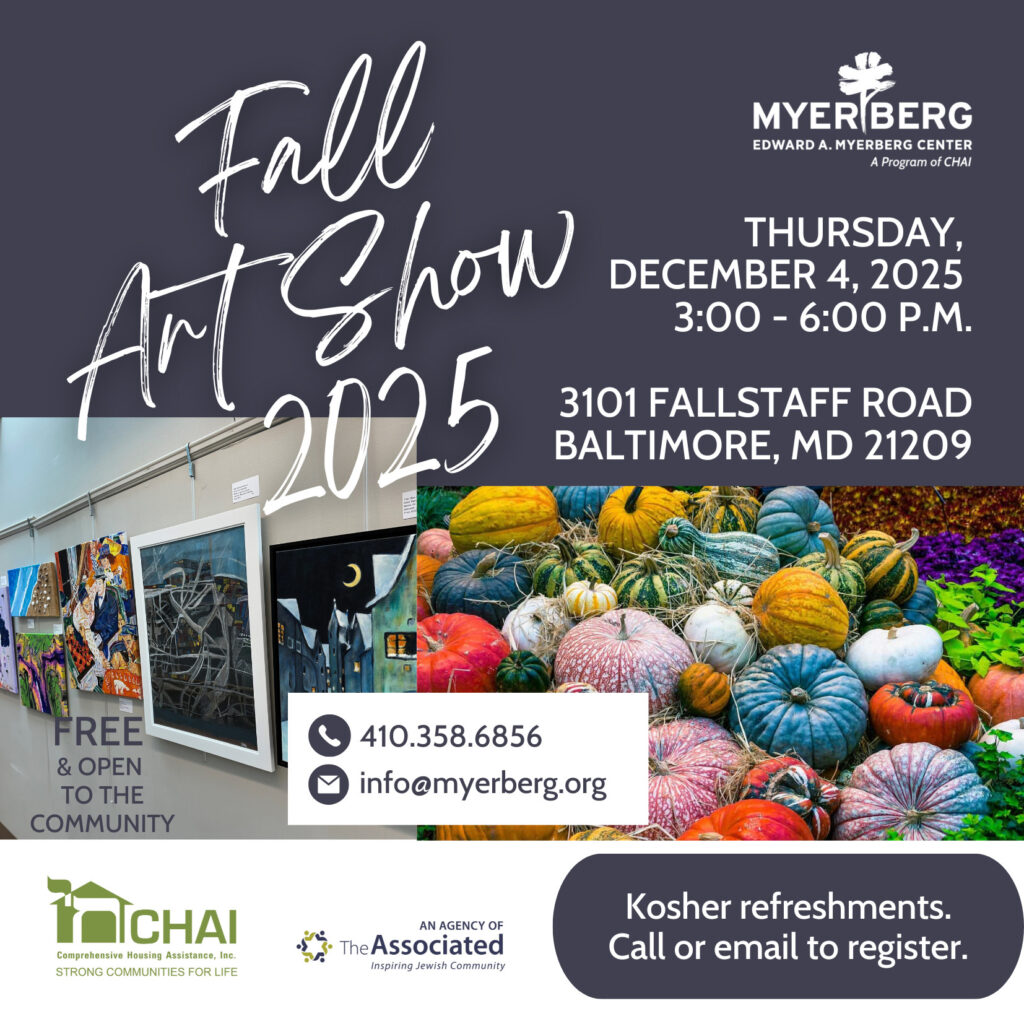 Registration is required. Call 410-358-6856 or email info@myerberg.org to register.